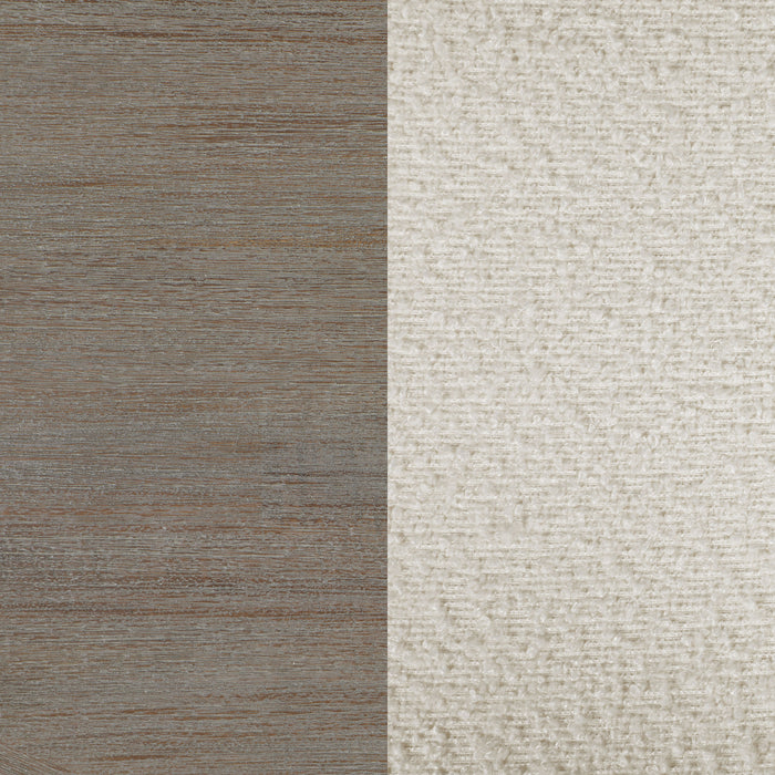 Trestle inspired style brings charming character to a five-piece modern farmhouse dining room set. It focuses on a rectangular dining table, complete with four side chairs that create a cohesive look with a casual coastal grey finish. Cream upholstery adds a fresh, bright touch, perfect for an inviting kitchen or dining room. Chairs feature modified ladder backs, offering artisan appeal, while the decorative table base instills the perfect touch of dimensionality. Foam padding adds comfort to seats, perfect for family and friends to enjoy a meal and conversation.